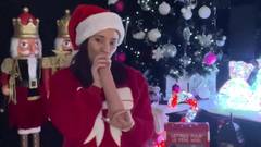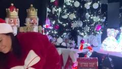 A bela e jovem morena que vemos se masturbando sob a árvore de Natal está tão excitada que coloca um brinquedo sexual entre as pernas enquanto sorri.