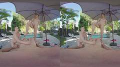 As duas compartilham o pau do mesmo homem em um pornô VR, mas a travesti se diverte mais, já que não é todo dia que ela tem a sorte de ser sodomizada assim.
