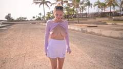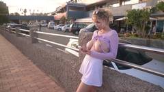 Essa jovem adora ser exibicionista porque se excita ao andar pela rua mostrando seus peitos enormes. Sob o sol, ela parece tão apetitosa quanto qualquer outra coisa.