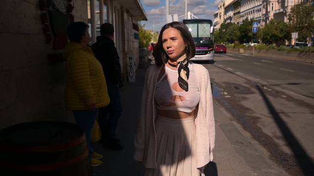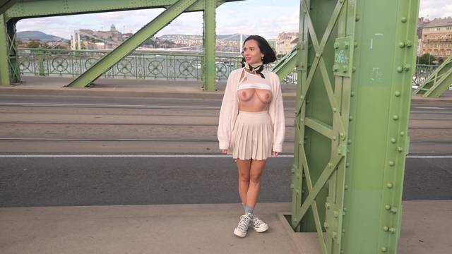 Hoje estaremos observando essa morena que foi às compras e depois saiu para passear, mas aparentemente ela adora exibir seus peitos e sua bunda ao sol.