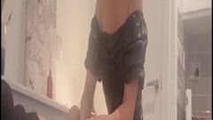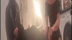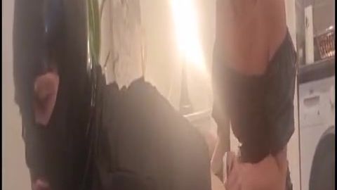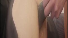 Ela fica com tesão quando o namorado chega para uma transa e acaba colocando-o na posição estilo cachorrinho para sodomizá-lo com um brinquedo sexual.