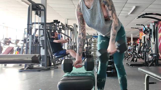 Nympha é uma daquelas ruivas sérias que todos nós gostaríamos de ter na cama. Mas hoje ela foi para a academia, onde passa o tempo treinando nua.