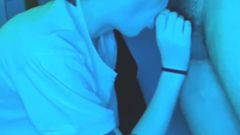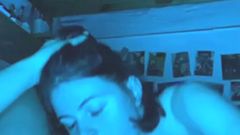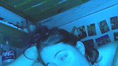 É noite e o namorado da Naiade veio visitá-la em sua casa para transar. Essa morena vai chupar seu pau profundamente até ele gozar.
