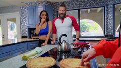 Quando uma milf gostosa, bonita e linda está na cozinha, é sempre uma boa hora para uma foda boa, molhada e dura.