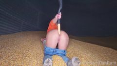 A loira hoje se masturba metendo uma pá de jardineiro