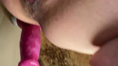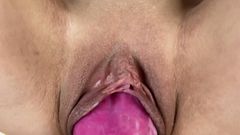 A cona esticada e carnosa de Lulu Blair enquanto ela enfia o dildo
