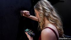 Ela chupa pênis através da parede em um quarto misterioso e se masturba no FaceTime com o marido, que assiste ao seu trabalho, para ficar ainda mais excitada.