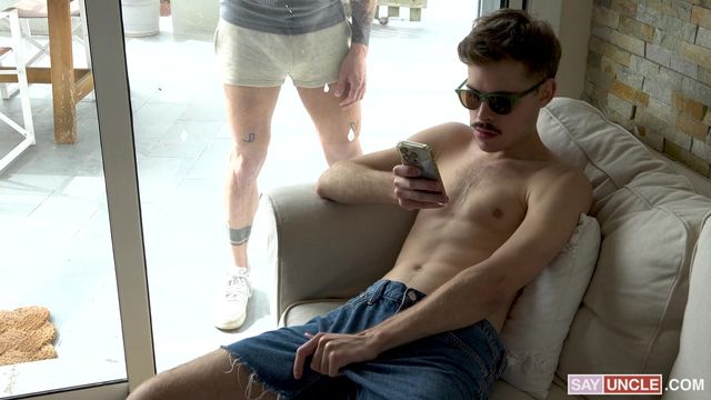 Este jovem pensou que estava sozinho, então começa a se masturbar, mas o homem que lava janelas viu o que ele estava fazendo! Então decidiu entrar e chupar