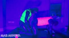 Com certeza você nunca viu um pornô como esse, em que um casal transa no estilo BDSM sob uma luz ultravioleta. Ele enfia a mão inteira na bunda dela!