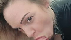 Ela chupa o brinquedo sexual dele para treinar um bom boquete francês