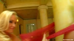 Essa Milf loira ainda é dona de um corpo sedutor que transpira sexualidade. Ela gosta de ficar por cima e, nesse clipe, usa e abusa do macho restringido com um lenço no pescoço...