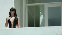 Esta linda morena safada não pode ver um homem na piscina porque fica logo com tesão e vontade de fazer sexo com ele e desfrutar fodendo ao ar livre...