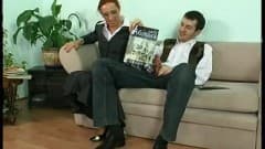 As ruivas são muito tesudas! Esta secretária fica cheia de tesão quando vê o seu colega de trabalho descansando no sofá...