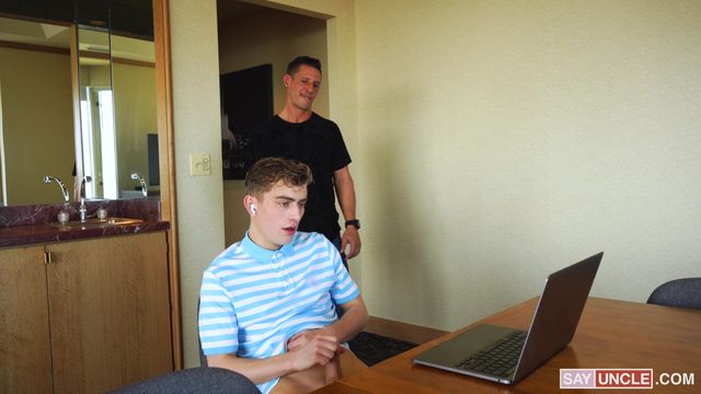 O padrasto vai pegá-lo várias vezes se masturbando com pornô gay e até no chuveiro, e é quando decide se juntar a ele para foder e mamar pau.