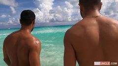 Depois de se conhecerem na praia, esses latinos voltam ao hotel para poderem chupar os paus mutuamente na cama e fazerem amor com paixão gay.