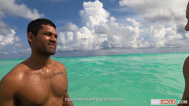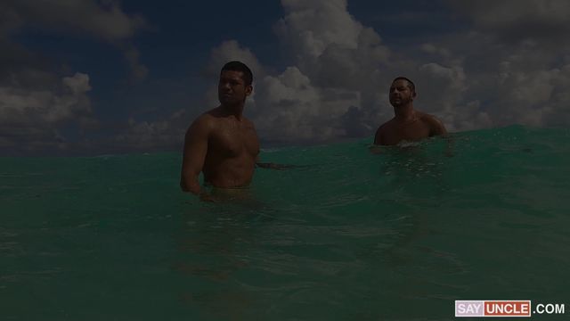 Dois latinos se chupam o pau depois de um mergulho na praia