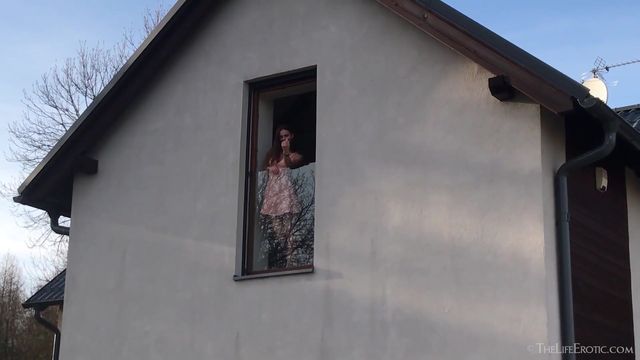 Kira Zen se masturba avidamente enquanto separa seus lábios rosados e enfia os dedos em sua buceta inchada que goteja de prazer voyeur.
