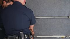 Os policiais Mick e Derek fazem com que Brandy chupe seus paus duros
