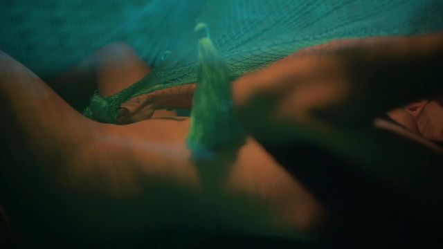 Channelle deita-se na rede, separa as coxas, comem-lhe a cona em suspensão e depois enculam-na com estocadas violentas, neste Rede Sutra ardente.