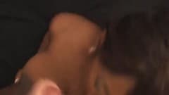 Esta negra de tetas enormes faz uma bela chupada de joelhos ao seu macho, ela chupa como ninguém e recebe um grande prazer quando está mamando...