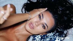 Em HQporner de traje de banho à beira da piscina, ela exibe e excita sua buceta depilada, depois decide meter os dedos em sua buceta lisa.
