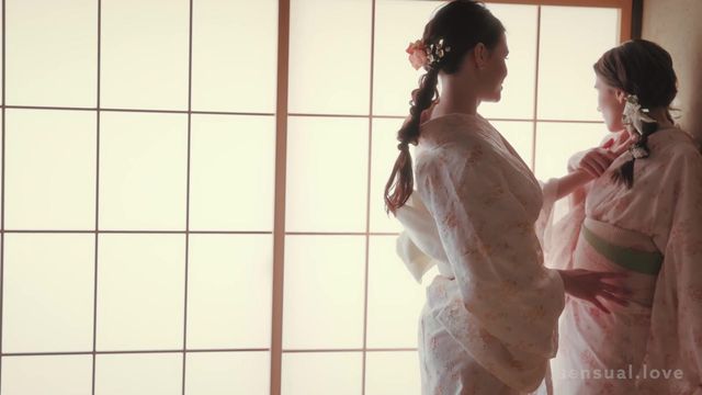 Kinsley White e Leona Mia encarnam um par de geishas lésbicas