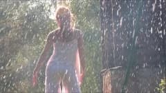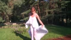 Uma adolescente sexy mostra seu corpo ao ar livre