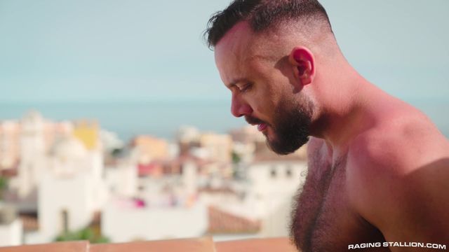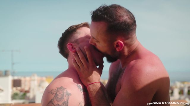 Depois de um longo passeio pela praia, era hora de voltar. No terraço, Sir Peter tira sua grande pica para encher a boca de seu amigo gay Andrew Delta