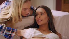 Nancy A e Vanessa Alessia se entrelaçam para uma foda lésbica erótica. Línguas em conas encharcadas, se esfregam violentamente até o orgasmo, sucos misturados.