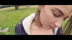 Durante um passeio, em um campo, ela se esconde debaixo de uma árvore para mostrar seu corpo e suas grandes maçãs que caem tão pesadas e perfeitas!