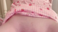 A câmera dela está ligada e ela começa a nos mostrar seus enormes mamilos, enquanto se masturba sensualmente sentada sobre um dildo que entra bem nela.
