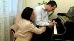 Esta safadinha excita-se muito enquanto seu namorado toca piano. Ela está cheia de tesão que decide partilhar com ele dando-lhe uma bela foda!