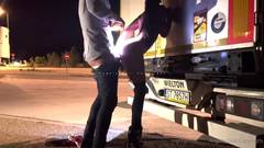 Ela chupa o pau do caminhoneiro do Eporner e depois se ajoelha na frente do caminhão, depois atrás em pé no estilo cachorrinha, esperando que ele goze nela.