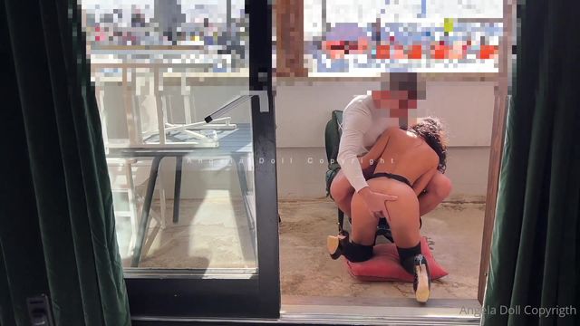 Esta bela mulher francesa mascarada chupa o pau de um cara na varanda, seus lábios chupam até o fundo, o sêmen sai a jorros e ela engole quase tudo.