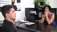 Ela está se sentindo nervosa antes da entrevista, mas o entrevistador não sabia que ela ia ser tão atraente, então faz os possíveispara pô-la a mamar em sua piroca ;)