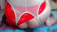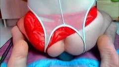 Esse gay decide vestir sua lingerie mais sexy e masturbar seu rabo com um enorme vibrador azul na frente da webcam para você assistir e desfrutar...