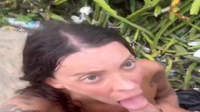 A latina trans põe-se a mamar o pau ao ar livre a uns gajos