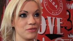 Esta menina loira bonita Bibi Noel fode este homem mais velho no sofá e ele gosta de cada segundo de seu jovem bichano apertado então ele goza todo o seu esperma em seu rosto.