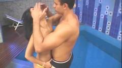 Neste vídeo esta sexy morena gosta de sentir o pau de seu homem e quando ele sai da piscina, ela faz tudo que pode para excitá-lo e dar-lhe muito prazer sexual.