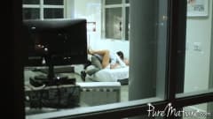A bela Milf Nicole Aniston é uma loira com seios firmes e uma bela buceta peluda que deixa esse cara louco, mas primeiro ela tem de pagar boquete pra ele...