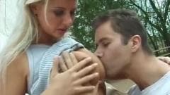 Lucy Van Dam em uma cena de sexo ao ar livre