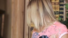 Esta loira é muito bonita e usa seu vibrador para se masturbar sobre a mesa enquanto ela imagina um pau de verdade penetrando-a.