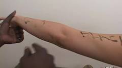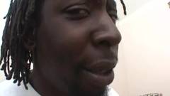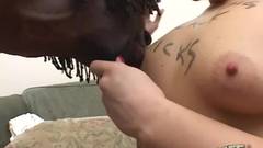 Shayna Knight chupa um grande pau preto, tomando profundamente e excitando esse macho até ele gozar em sua boca pra ela engolir tudo.