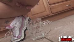 A morena peituda, Moxxie Maddron está em casa fazendo um smoothie saboroso e adicionando um pouco de sabor derramando o suco na bunda antes de beber.