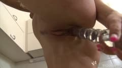 Aqui estamos com uma loira bonita que é jovem e quente que se masturba na cozinha com seu vibrador para você!
