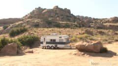 Esta loira gostosa tem um brinquedo novo e ela não pode esperar mais para brincar com ele e, logo que ela encontra um lugar tranquilo e isolado, vai ter algum divertimento com ele em cima da mesa ao ar livre.