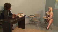 Esta menina loira tem um tutor que está obcecado com seu corpo e é por isso que hoje ele vai transar com ela na sala de estar, porque ela realmente quer isso também.