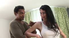 Amadea Emily tem uma buceta bem peluda! Este negro fica muito animado quando vê sua buceta e decide que vai gozar tudo sobre ela.