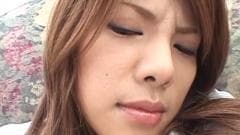 Esta porno star asiática está se masturbando no sofá fora com seus diversos brinquedos sexuais, primeiro ela desperta seu clitóris com um vibrador antes de foder sua buceta peluda e bunda com um vibrador.