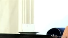 Esta linda e jovem morena que, lenta e sedutoramente, tira a roupa antes de se deitar no chão e tocar seu corpo de uma forma muito sexy.